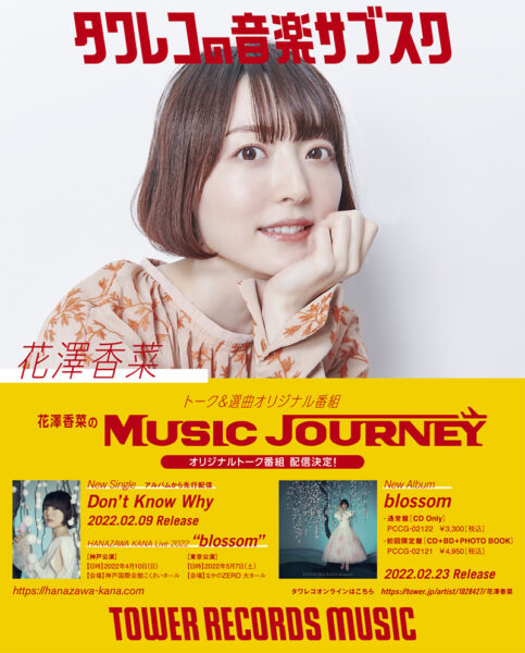 タワーレコードの音楽サブスク TOWER RECORDS MUSICオリジナルトーク&選曲番組「MUSIC JOURNEY」に花澤香菜が2月16日より3週にわたって登場!