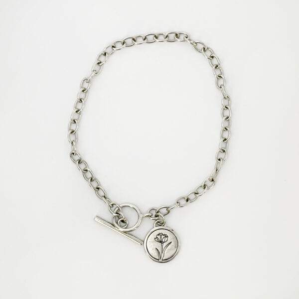 花澤ロゴのお花を刻印したブレスレット。バックチャームとしても使えます!